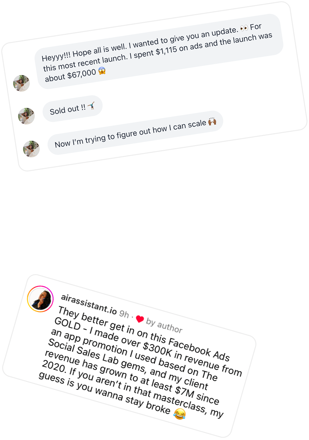 We don't work with everyone. We only take clients who are already successful and ready to scale to the next level.